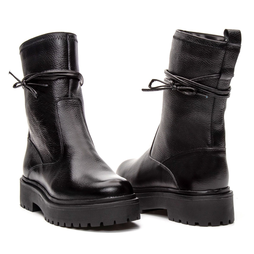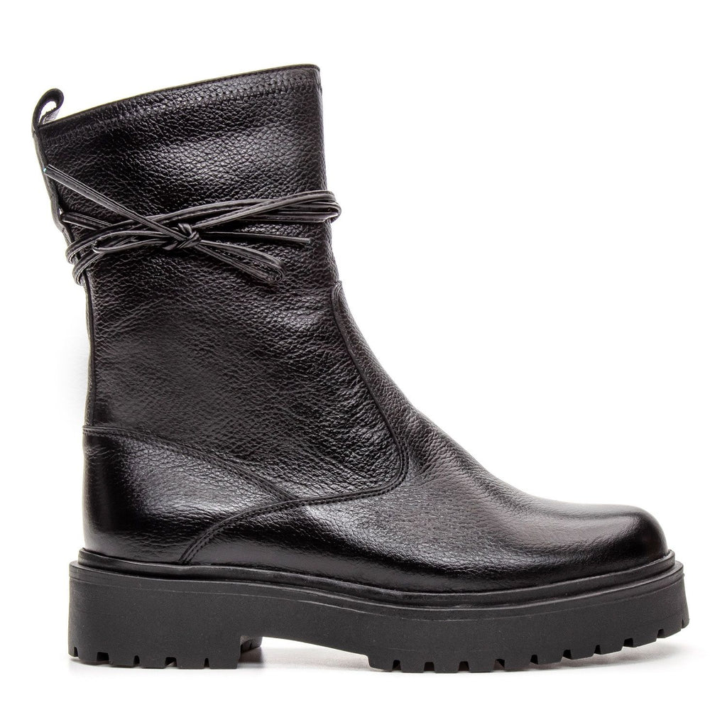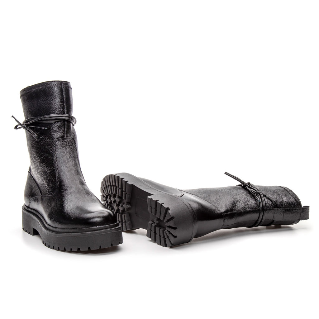Bota Coturno Cano Médio Couro Preta Com Zípe